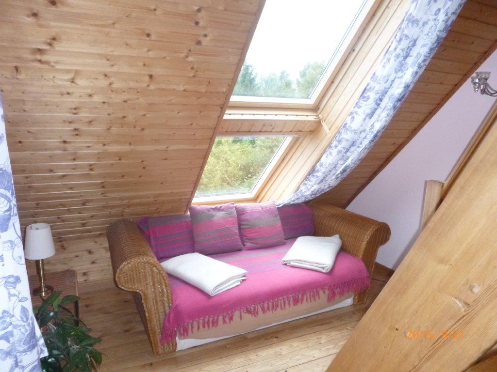 Im Obergeschoß erwartet Sie ein schöner sonniger Wohnraum mit Schlafgelegenheit. Im darüberliegendem Schlafspitzboden im Dachgeschoß befindet sich ein Doppelbett. Vor dem Eingang haben Sie die Frühstücksterrasse in Richtung Osten mit Eßplatz.